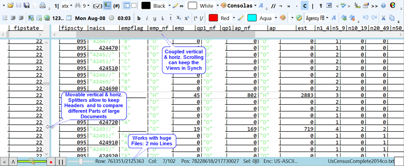 Spoc-Text ist für die Arbeit mit großen Text-Dateien vorbereitet. Anders als die meisten WYSIWYG Editoren erlaubt er die Arbeit an Dateien mit mehreren Millionen