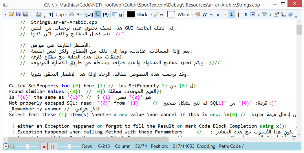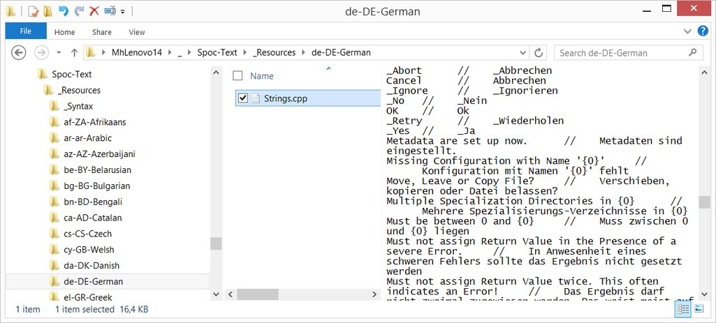 The Spoc-Text Editor and the Markup/Programming Languages it supports are extensible on different Levels. This Section shows how You can translate the Labels, ToolTips and Messages of these